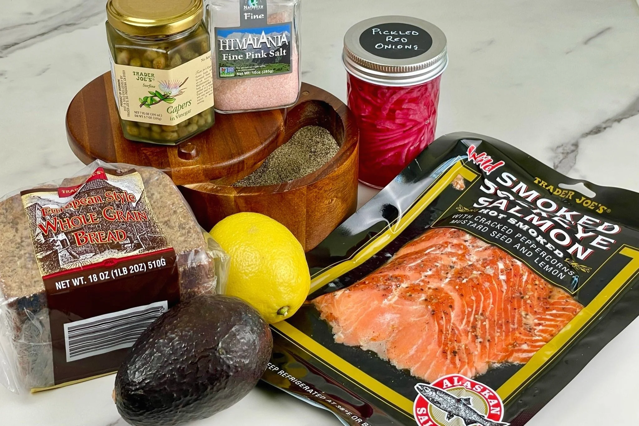 Use high quality ingredients. We actually used products exclusively from Trader Joe’s for this recipe. The smoked sockeye salmon (hot smoked), European style whole grain bread, avocado, and lemons were all from TJ’s!