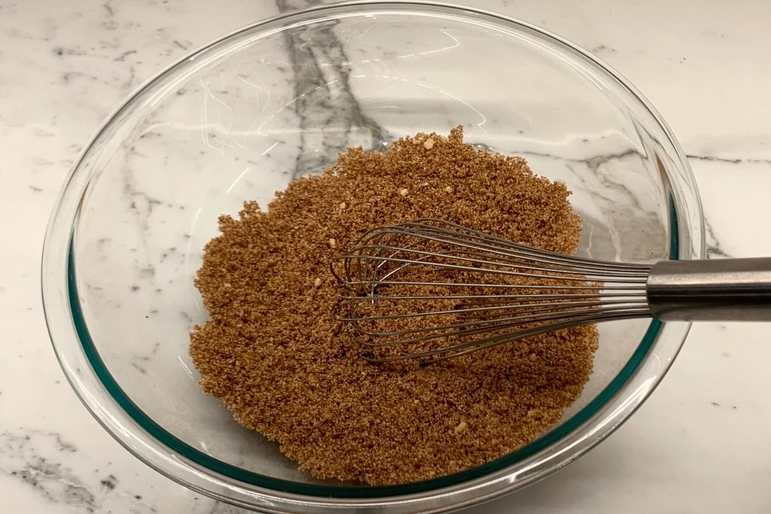 In a large mixing bowl, combine 1/2 cup light brown sugar (packed) and 1/2 cup dark brown sugar (packed), 1/2 teaspoon salt, and 1/2 teaspoon cinnamon with a whisk (break up large clumps before adding other ingredients).