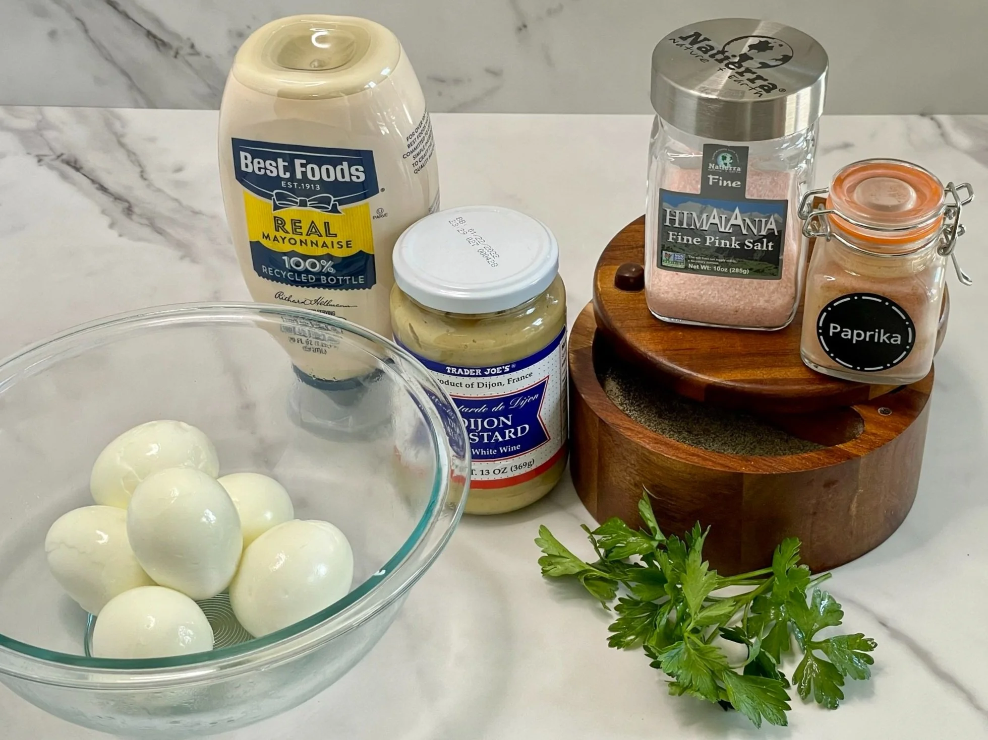 Deviled Eggs always remind me of my father. When I was young, my father would often make them on the weekend, or as a quick appetizer when we entertained. Back in the day when the bright yellow variety of mustard was the only one available in local grocery stores, my dad would opt for Dijon style mustard instead (when he could find it). At that time, this was a very unusual flavor profile for Deviled Eggs, as it was typical in the US to use yellow mustard and pickle juice.