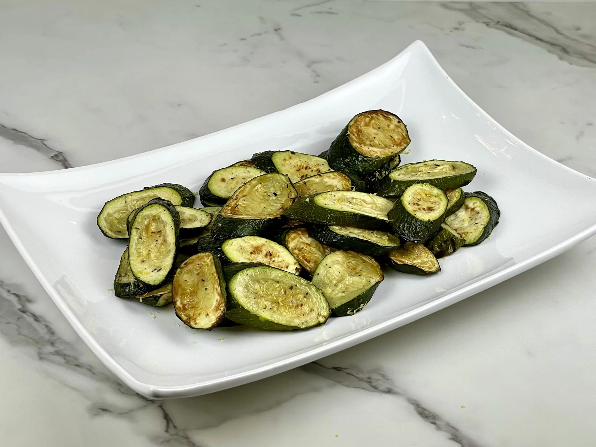 Our Easy Roasted Zucchini recipe is as simple as it gets! This clean eating side dish recipe is quick and easy to prepare, and tastes delicious. The roasting process lightly browns the edges, and allows the zucchini to retain its fresh flavor. For an extra burst of freshness and saltiness, the zucchini is finished with a sprinkling of fresh lemon zest and a light dusting of sea salt flakes.