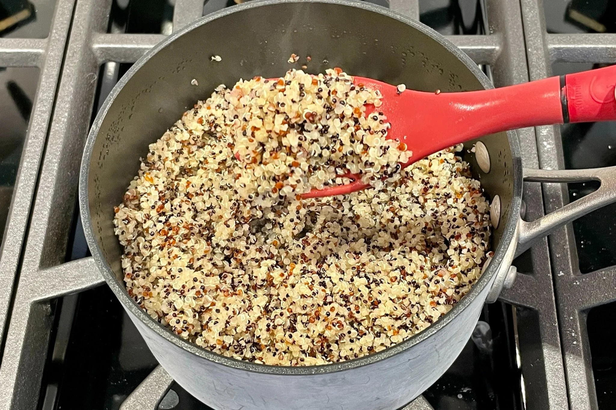 - Cook tri-color quinoa (try our easy quinoa recipe), and set aside to cool completely.