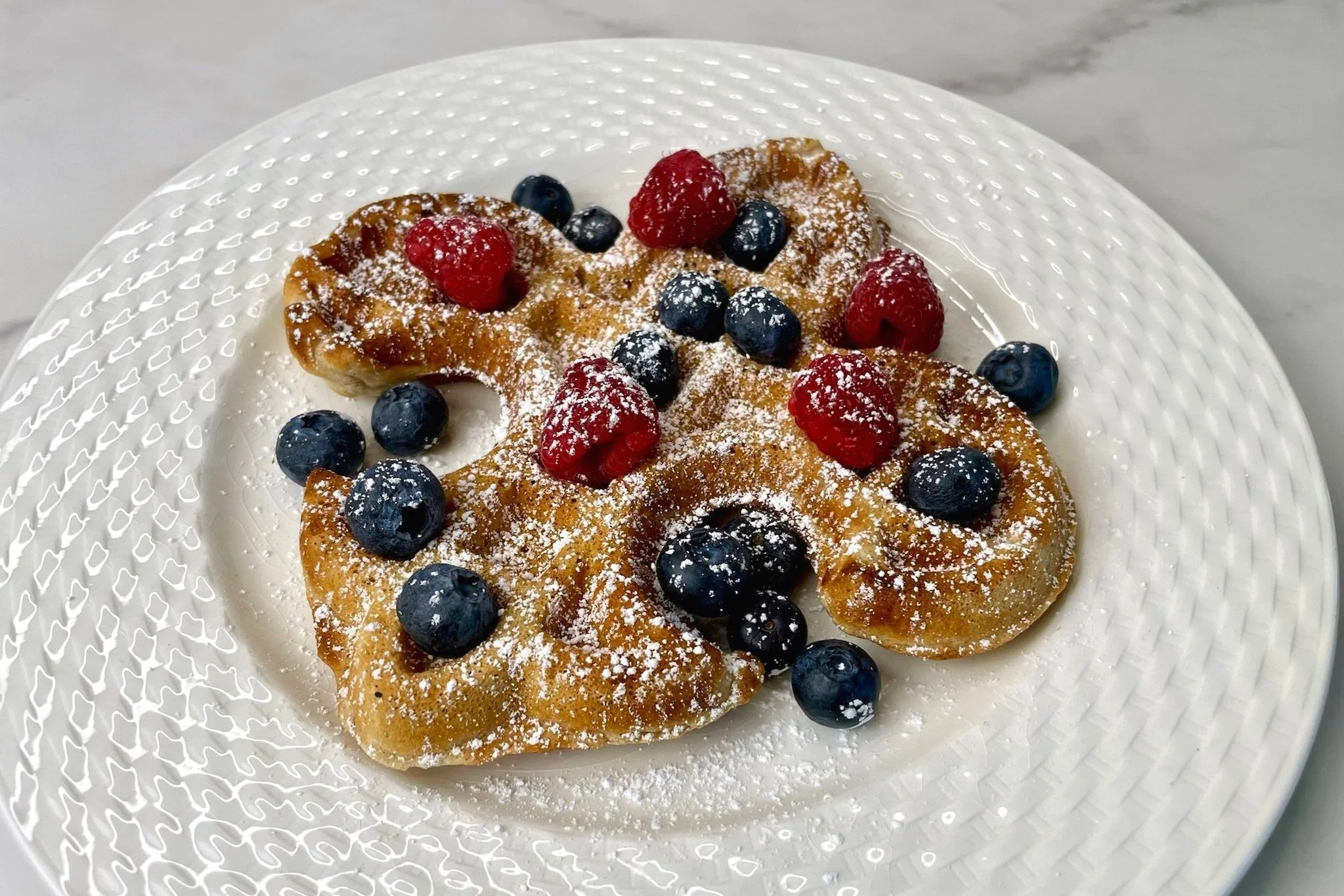 Note: You can use a traditional Belgian waffle iron for this recipe, but we loved the unique Fleur de Lis design of this waffle maker!