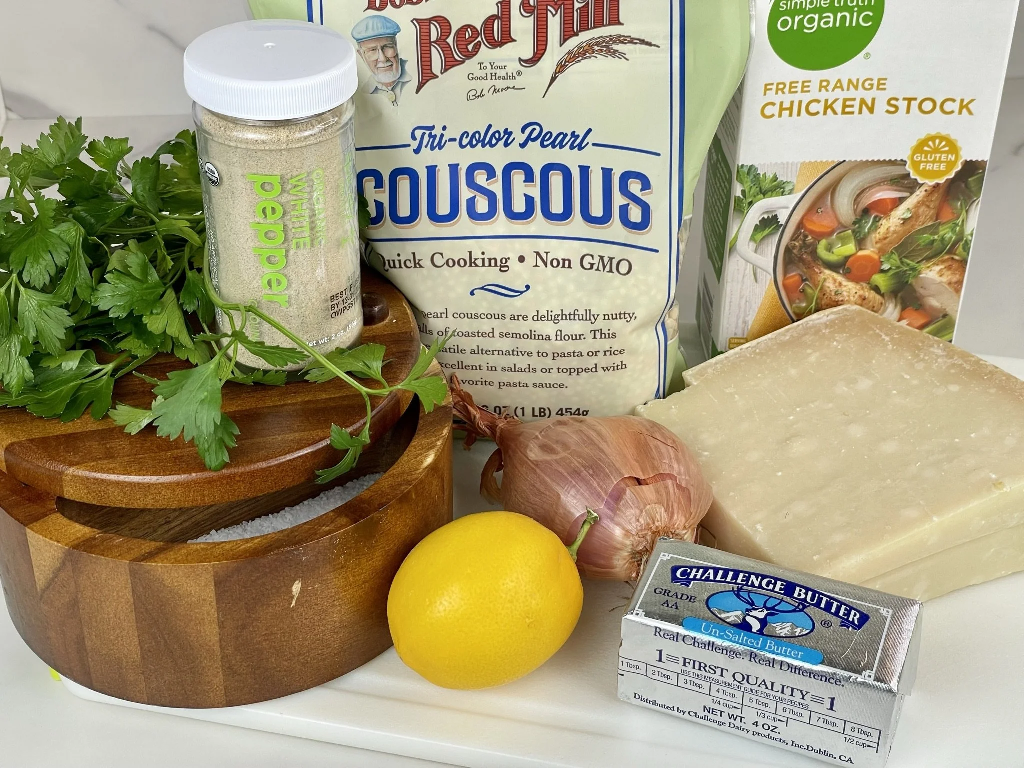 I never tried pearl couscous (aka: Israeli couscous) until about 10 years ago when I was at a local restaurant. They served it with grilled salmon and it was delicious. I fell in love with the texture, as it was more substantial than traditional couscous. Since then, I’ve been on a mission to figure out the best neutral couscous recipe that will complement any protein, and decided to bring it to the PMR Test Kitchens.