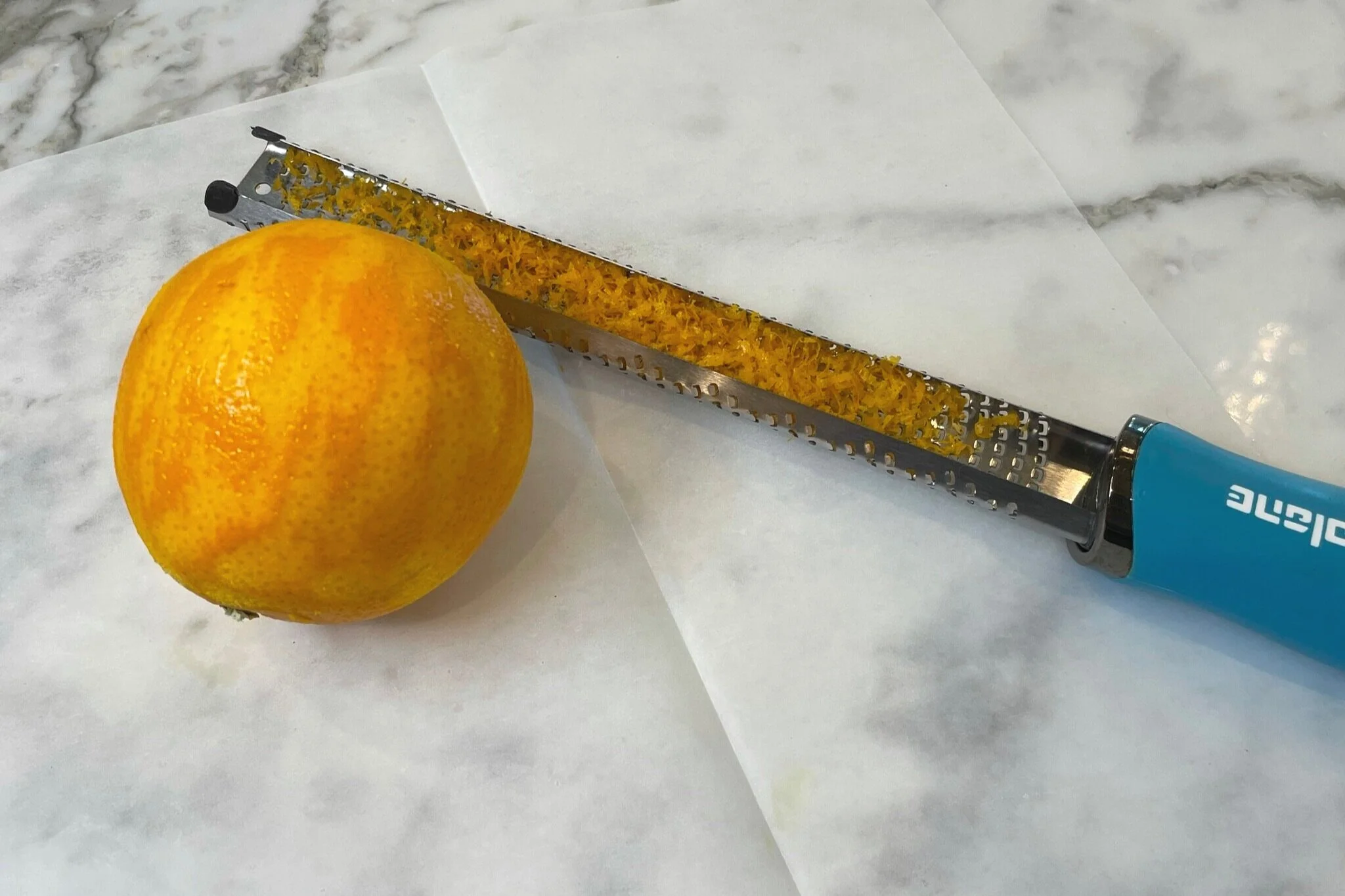 With a Microplane zester, grate 1 teaspoon orange zest.