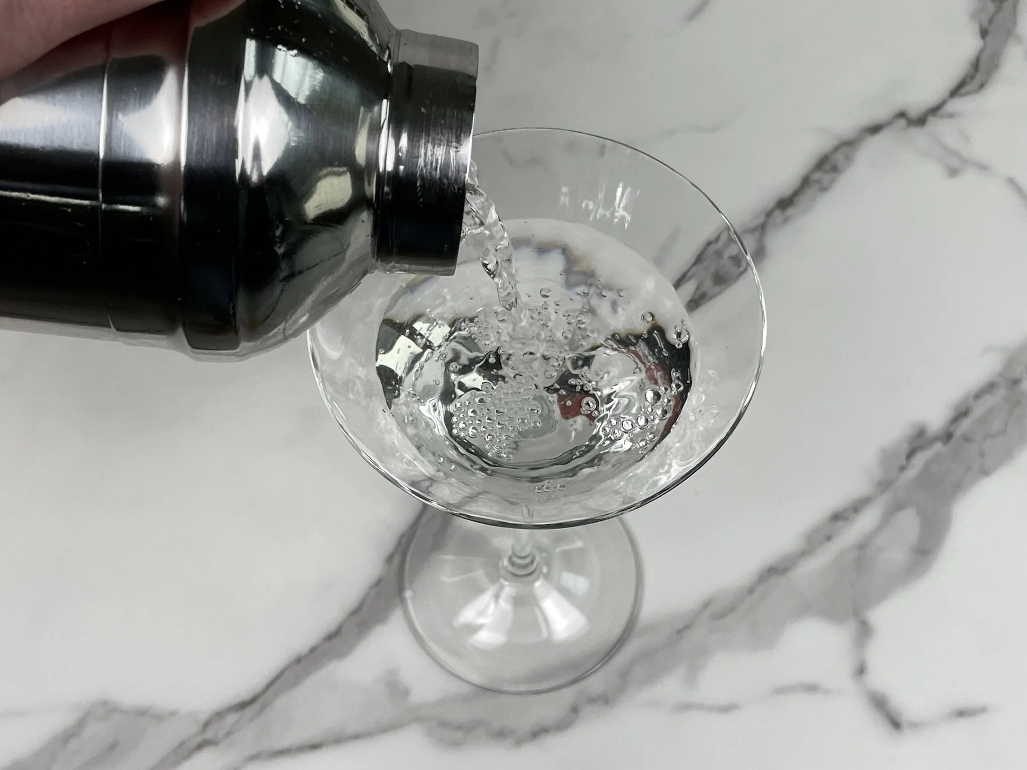 Note: There are two ways to chill a martini glass. 1) Place a martini glass in your refrigerator about 15 to 30 minutes before you start preparing your cocktail. 2) Fill a martini glass with ice and water, and let it chill while you prepare your cocktail. Once you are ready to pour, dump out the water and ice from your martini glass, and pour the cocktail into your chilled glass.